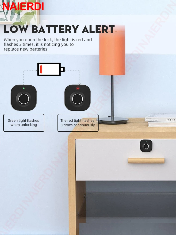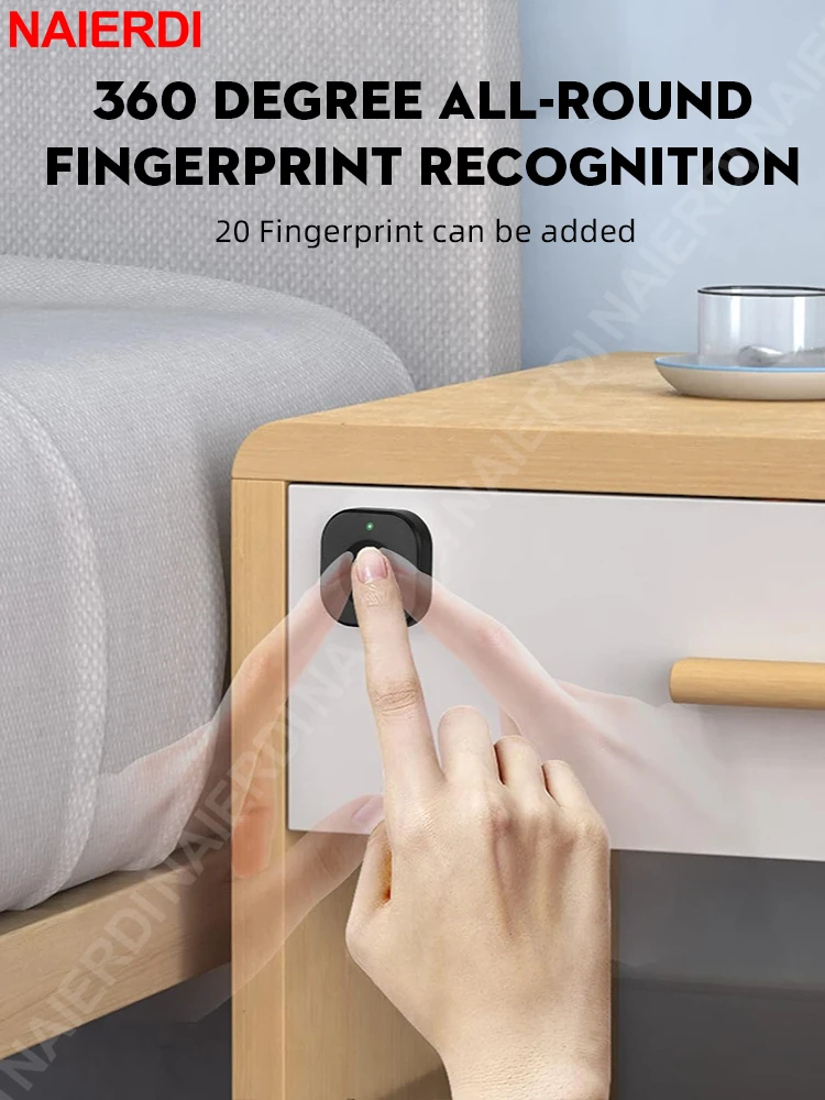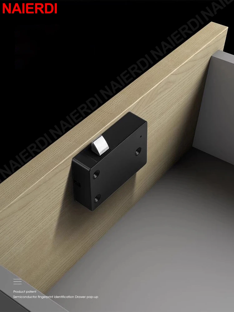 NAIERDI-cerradura biométrica inteligente para armario, cerrojo negro sin llave con huella dactilar, antirrobo, para cajón de archivo oculto, Hardware de armario